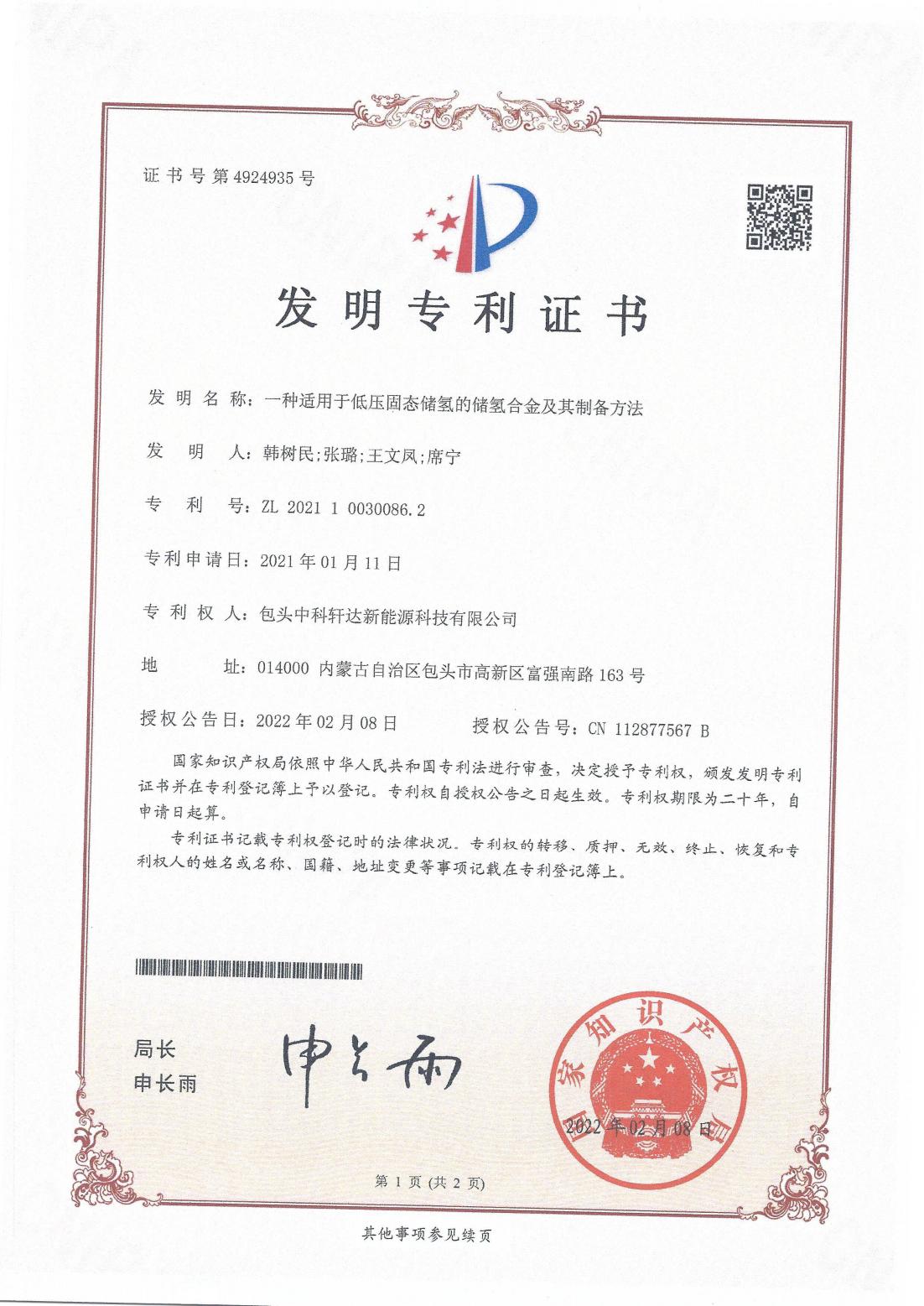 專利證書